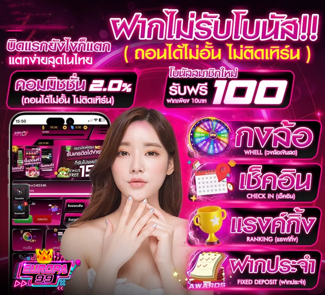 เปิดโลกแห่งการเดิมพันที่เหนือระดับไปกับแพลตฟอร์มเกมสล็อตออนไลน์ที่กำลังเป็นที่พูดถึงมากที่สุดในขณะนี้ หากคุณกำลังมองหาแหล่งทำเงินที่เชื่อถือได้และพร้อมมอบประสบการณ์สุดพิเศษ บอกเลยว่าคุณมาถูกทางแล้ว ที่นี่เราคัดสรรเฉพาะเกมคุณภาพเยี่ยมจากค่ายดังระดับโลกมารวมไว้ในที่เดียว เพื่อให้สมาชิกได้สัมผัสกับความบันเทิงที่ครบครันและตอบโจทย์ทุกความต้องการ ไม่ว่าจะเป็นกราฟิกที่สวยงามตระการตา หรือระบบเสียงที่สมจริงชวนตื่นเต้น ทุกอย่างถูกออกแบบมาเพื่อความสนุกที่ไร้ขีดจำกัด สิ่งที่ทำให้เราโดดเด่นกว่าใครคือความเสถียรของระบบที่ได้รับการพัฒนาอย่างต่อเนื่อง ทำให้การเล่นของคุณลื่นไหลไม่มีสะดุด ไม่ว่าจะเล่นผ่านอุปกรณ์ใดก็ตาม นอกจากนี้เรายังให้ความสำคัญกับการบริการที่จริงใจและโปร่งใส ทีมงานมืออาชีพพร้อมดูแลคุณตลอด 24 ชั่วโมง เพื่อให้มั่นใจว่าทุกปัญหาของคุณจะได้รับการแก้ไขอย่างรวดเร็ว มาร่วมพิสูจน์ความยิ่งใหญ่และคว้าเงินรางวัลมหาศาลไปกับ **europa99** เว็บไซต์ที่จะเปลี่ยนวันธรรมดาของคุณให้กลายเป็นวันที่แสนพิเศษ ด้วยมาตรฐานระดับสากลที่ใครๆ ก็ต่างยอมรับ ลองเปิดใจแล้วคุณจะรู้ว่าความรวยอยู่ใกล้แค่เอื้อม